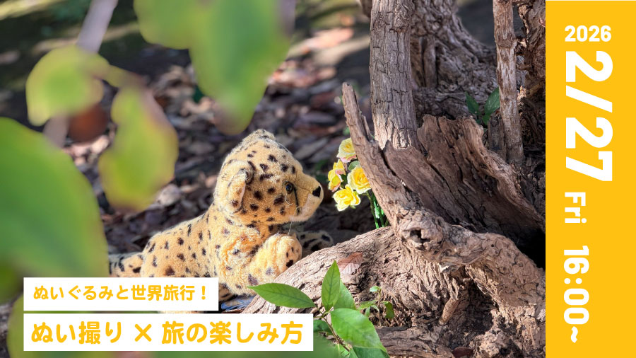 | 内容 | 大切なぬいぐるみとの「旅の瞬間」を残しませんか?ぬい撮りがもっと楽しくなる,とっておきのアイデアを教えます!ぜひ,お気に入りのぬいぐるみを連れて来てくださいね。 |