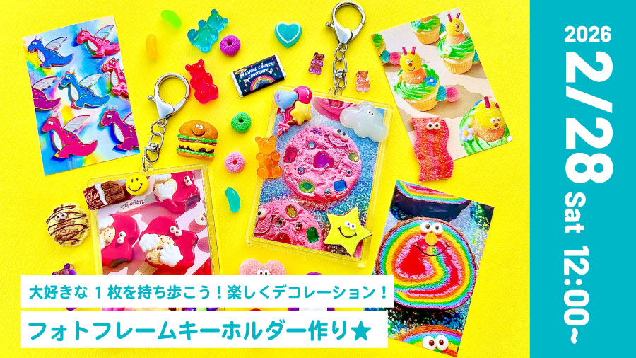 | 内容 | お気に入りの写真が、いつもそばに♩旅の思い出、推しの笑顔、ペットのかわいい瞬間など、好きな写真で作れる「フォトフレーム型キーホルダーデコレーション」のワークショップです。パーツを選んで、可愛くデコレーションして、世界にひとつだけのお気に入りキーホルダーを作りを楽しみましょう!親子でも、おひとりでも、はじめての方でも簡単に楽しく作れます。 |