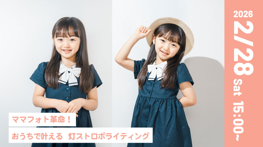 | 内容 | お部屋が暗くても、曇りの日でも大丈夫!ストロボ1灯で、おうちでも明るく可愛く子どもを撮るコツが学べる、ママ向けライティング講座です。最低限の機材と、身近なアイテムでできる“光づくり”の工夫や、すぐにおうちで真似できるセット例も実例でご紹介します。「暗いから撮れない…」が「これならできる!」に変わる40分。おうちフォトがもっと好きになるママのためのワークショップです。 |