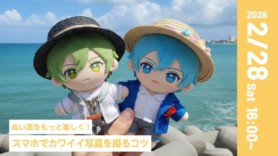 | 内容 | スマホで簡単にカワイイ推しぬい写真が撮れる方法をお伝えします。推しのぬいぐるみがいる人は一緒に参加して、最高の思い出写真を残しましょう!これからのぬい活がさらに楽しくなります♪ |