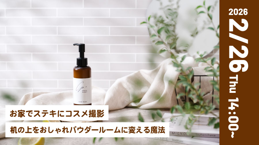 | 内容 | 広くておしゃれなお家じゃなくても大丈夫!手に入りやすいプロップスを使って、コスメスタイリングフォトのコツを解説します。前半は、座学形式で過去撮影例の解説、後半ではFACE WASHを被写体に実際の撮影風景をご覧いただきます。※2/26、3/1両日とも前半座学の内容は同じですが、後半撮影のスタイリングは異なります。 |