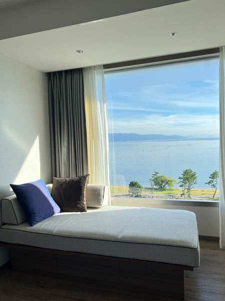客室が広々としていて、朝と夕方で違った琵琶湖の表情を楽しめるところがこのホテルの魅力だと思いました。幼児向けの館内着やウェルカムドリンクもあったりと子連れに優しいです。車移動であれば琵琶湖周辺のアクティビティやショッピングモールを満喫しやすいです!