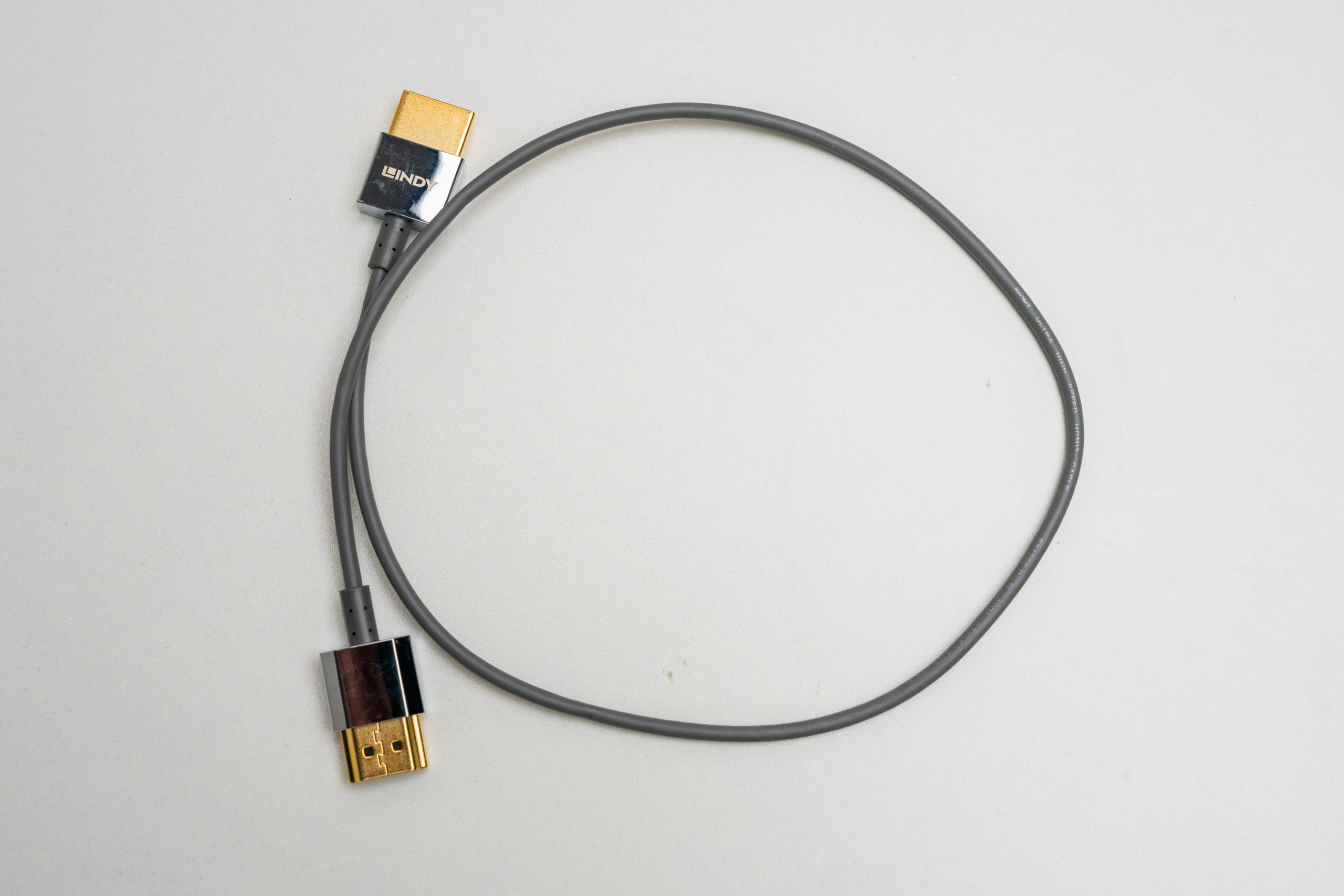 LINDYのHDMIケーブルはどれも極細で、「LINDY 0.5m CROMO LINE HDMI 2.1 Type-A」は直径2.8mm極細となっています。