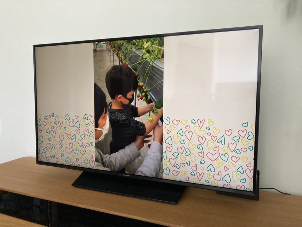 縦の動画はディスクのデザインと一緒の背景になるようです。横だとテレビ画面いっぱいになるので普通のDVDをみているのと一緒でした。画質も問題なく、スマホの画面をテレビでみている感覚です。