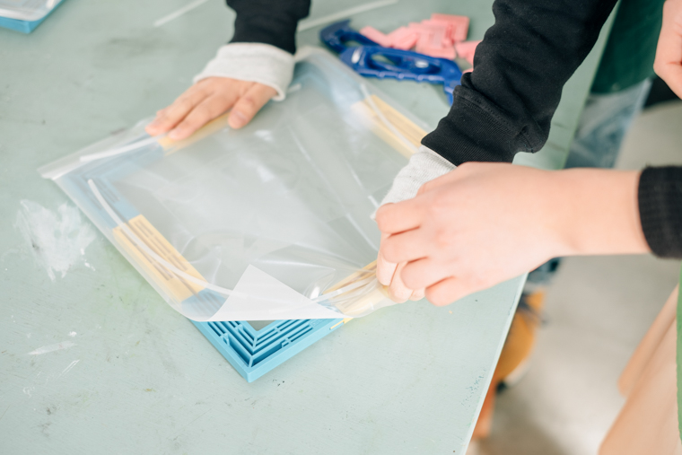 組み立てたSURIMACCAの枠に版を固定していきます。
