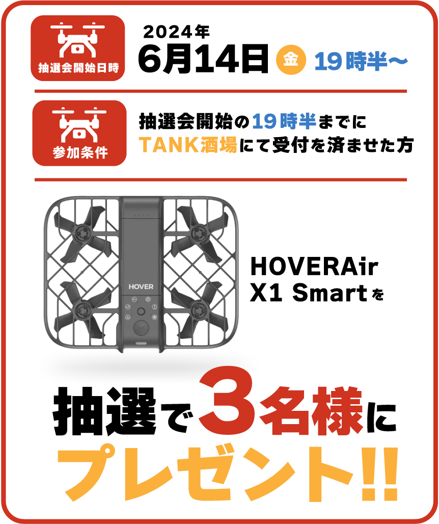 関西写真部SHAREのミートアップイベントを心斎橋PARCO地下2階、ネオン食堂街のTANK酒場で開催!カメラマンやモデル・被写体、デザイナー、イラストレーター、スタイリストやメイクアップアーティスト、ディレクター、プロデューサーなど、クリエイトな方であれば誰でも参加OK!TANK酒場にぶらぶら集まる会です。DJ音楽を楽しみながら、ダラダラお話ししても良し、お仕事に繋がるようなお話をしてもOKです!!3回目の開催となる今回の目玉は、クラウドファンディングで2億円を集めたAI飛行カメラ「HOVERAir X1 Smart」 が3名様に当たる抽選会を開催!またドローンエキスパートアカデミー JUAVAC 大阪枚方校の講師も2名来てくれます!ドローン飛行に興味のある方、ぜひご参加ください。