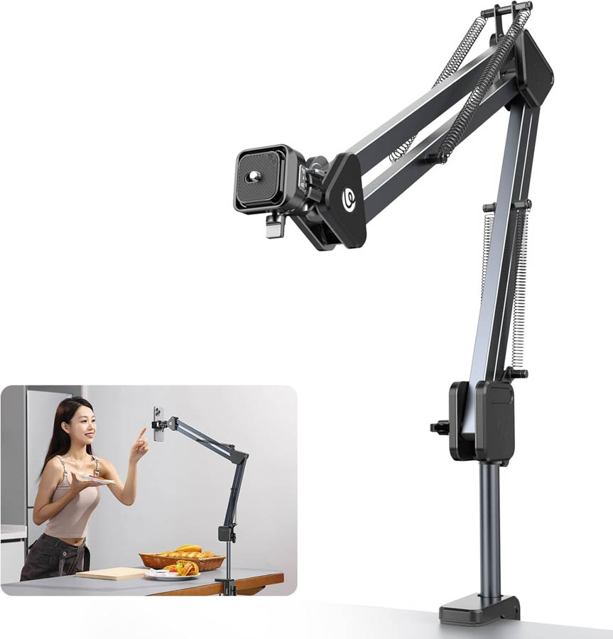 | Ulanzi「TH04」は、バネ式でいつでも機材をホバリングさせられるカメラアームスタンドです。従来の手動調整型アームと異なり、ノブを固定するだけで機材を好きな位置に簡単に配置でき、微調整もスムーズ。延長カメラアームは最大910mmまで伸長可能で、360°回転するボール雲台と上下90°の角度調整により、横・縦構図を自由に切り替え、多角度撮影が可能です。航空用アルミ合金素材を採用し、耐久性と安定性が高く、錆びにくく長期間使用可能。最大耐荷重2kgまで対応し、関節部分の強力コネクタが機材をしっかり固定。卓上や俯瞰撮影、VLOG、ライブ配信など、多様な撮影シーンで活躍する高性能アームスタンドです。 |